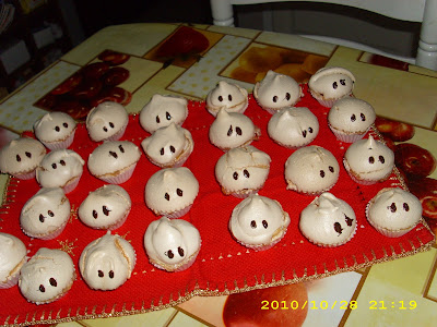 E por fim, fizemos fastaminhas suspirantes, claro que só foi permitido fazer após contactar 2 grandes amigas que tenho, a Isabel e a Nelinha, pois nunca tinha feito suspiros e após as indicações das mesmas ficaram com este aspecto. Bem altinhos e bonitinhos...